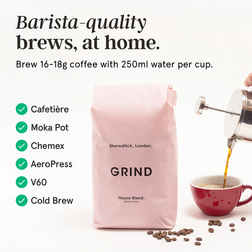 Our ground coffee is an omni-grind, designed to make a café-worthy cafetière, stovetop espresso, or filter brew.