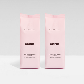One 227g bags of speciality whole bean or ground coffee in our limited edition Christmas Blend. Our pink coffee bags are plastic-free and commercially compostable.