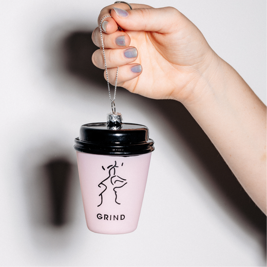 A tribute to our iconic café takeaway cup, this miniature glass Christmas ornament brings a little Grind pink to your tree. And who wouldn't want that?