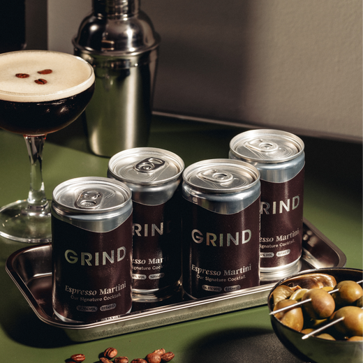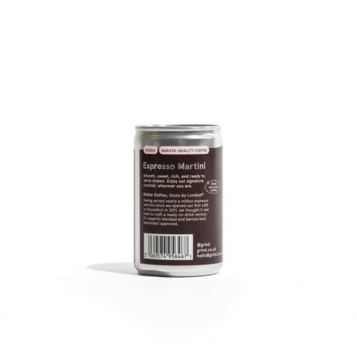 The Grind Espresso Martini is 14.9% vol., the equivalent of a double measure like you'd get in a bar. There are 1.86 units of alcohol per can.