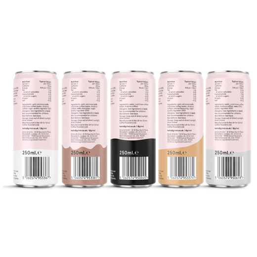 All our cans have two shots of speciality coffee to give you a cool caffeine kick on-the-go or at home.