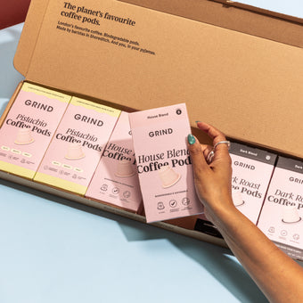Grind instant is different because we've set out to make the best instant coffee you can find: it's crafted using 100% speciality-grade Arabica beans, which we ethically source from sustainable farms and expertly roast before slowly and carefully freeze-drying into soluble granules. These are the same beans we use for our speciality whole bean, ground, and coffee pod blends. We then enrich the granules with 15% microground Arabica beans, which gives our instant coffee a fuller body, smoother texture, and richer flavour profile.